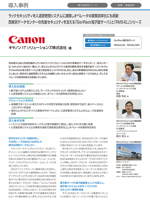 データセンタ― サーバラック・セキュリティシステムキヤノンITソリューションズ株式会社様