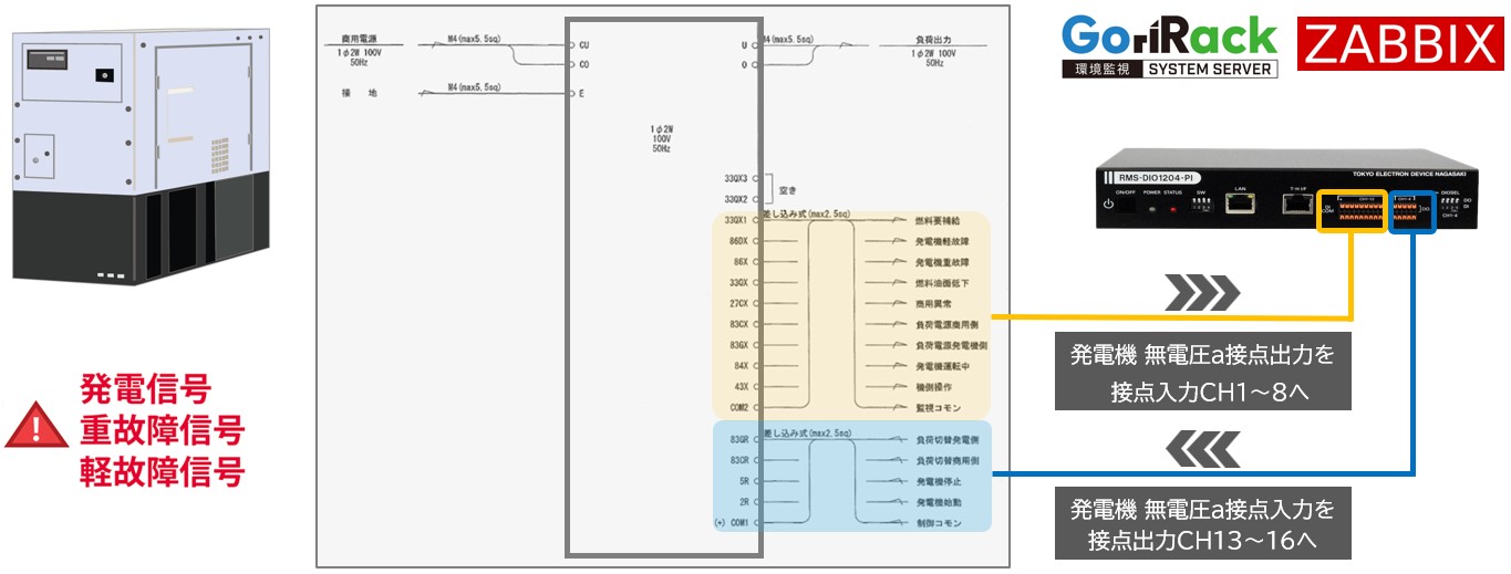 ソリューション例 - 発電機の接点入出力をZabbixに連携する