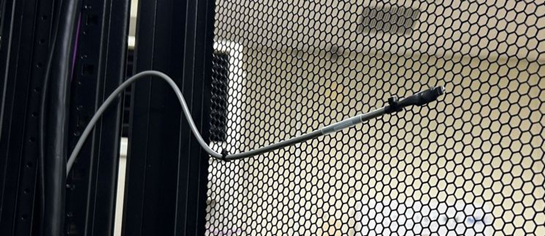 背面コネクタ側にラックマウントブラケットを取り付けてケーブル固定に活用している例です(ラックマウントブラケットのみの販売可)。線量が多くない場合はこのような固定が可能です。