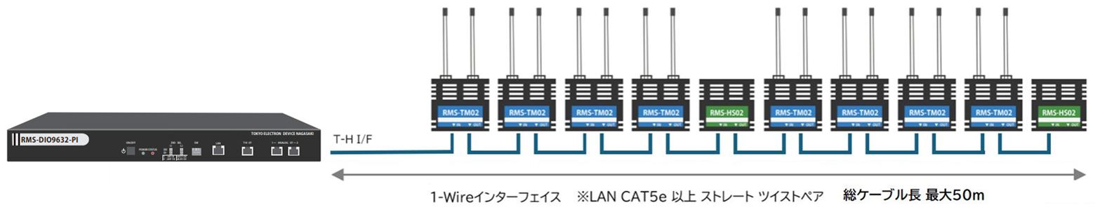| 温度・湿度監視 | 1-Wireポート(1ポート)にLANケーブルでデイジーチェーン接続 温度センサ RMS-TM02 最大 4 台( 2 点 /台) 湿度センサ RMS-HS02 最大4台( 1 点 /台) |